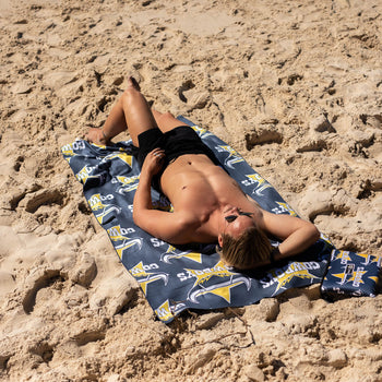 NRL Redcliffe Dolphins x Nakie 1 × Recycled Sand Free Beach Towel Dimensions: 160cm × 90cm Weight: 740 grams 1 × Water Proof Storage Bag Dimens...