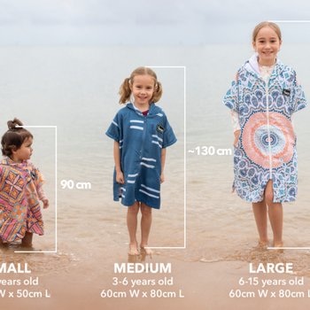 Save 0% €62,95 Salty Waves - Kids Hooded Towel Recycled Sand Free 1 × Hooded Towel Sand Free Size Small (Recommended Age 1-3) Dimensions: 45cm Wide × 50cm Length Weight: 340grams Storage bag: Dimensions: 25cm ×... View full details